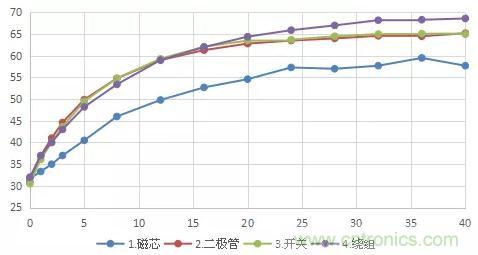 5.熱平衡設(shè)計(jì) 仔細(xì)考察電源的熱景象,主要溫升器件的極端最大溫升應(yīng)大致一致,一般可以50C°為限值。溫升還可判斷變壓器設(shè)計(jì)的合理性、散熱工的合理性、意外的溫升點(diǎn)意味著高效率設(shè)計(jì)的敗筆。