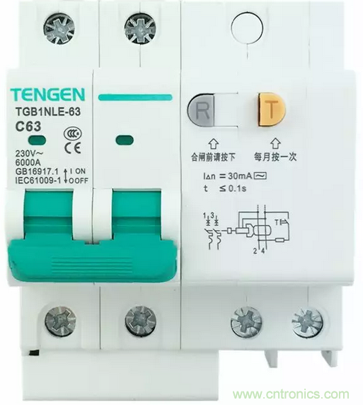 第一我們來看1P+N的漏電保護(hù)開關(guān)的標(biāo)注和接線方法:
