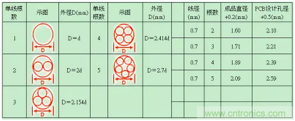 多根飛線直徑計(jì)算參考如下表格: