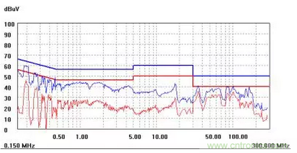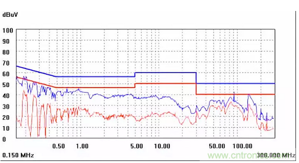 圖一a可以看出,改變PCB布局后130M-200M已經(jīng)完全被衰減,但是30-130M沒(méi)有圖一效果好,可能變壓器出線無(wú)交叉好一些。仔細(xì)觀察,此IC具有抖頻功能,傳導(dǎo)部分頻段削掉了一些尖峰;