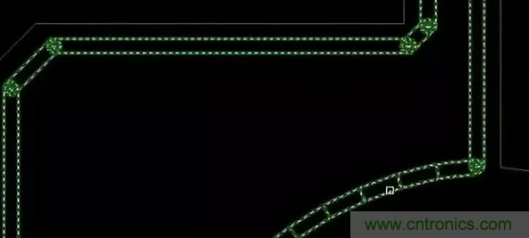 16.畫(huà)小板時(shí),在小板引腳的90度拐角處增加一個(gè)圓形鉆孔。