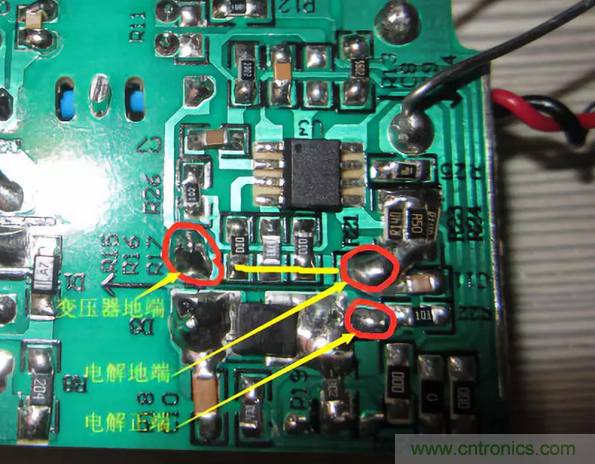 二:Y電容回路走線越短越好先經(jīng)過(guò)變壓器地再回到大電容地,不與其它信號(hào)線交叉;
