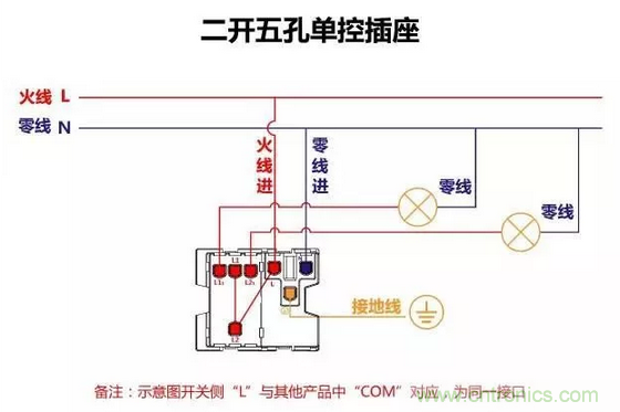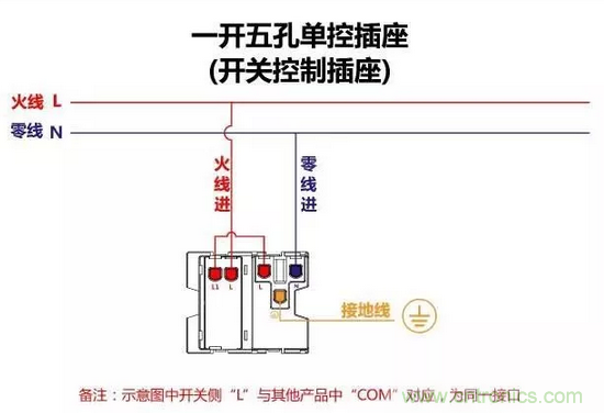 一開五孔單控插座接線圖