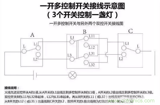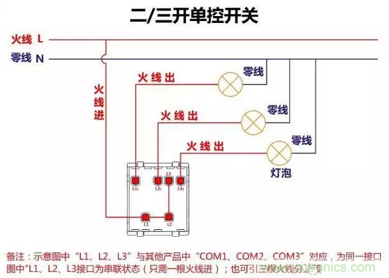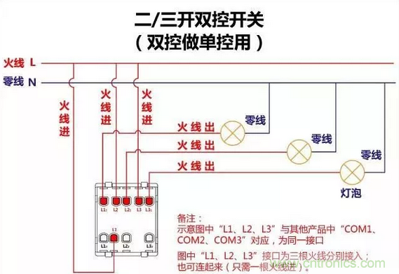 三控開關的布線