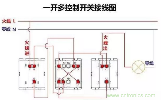 一開多控開關接線圖