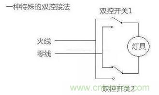 雙控開(kāi)關(guān)有很多種接線方式,如果電工采用了下面這種接線方法,就會(huì)關(guān)燈后發(fā)微光。