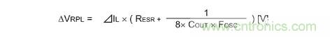 以下是表示輸出紋波電壓的公式。電容器的紋波電壓和ESR的紋波由于相位偏離,故無(wú)法進(jìn)行單純的加算,不過(guò)卻是紋波電壓的最差值概算常用的公式。