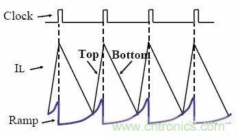 當(dāng)輸入電壓比輸出電壓低△V時,開關(guān)管A保持常開,開關(guān)管B保持常關(guān),開關(guān)管C和D工作于同步Boost模式。其工作原理與一般的同步Boost工作原理完全相同,控制的方法為峰值電流模式,如圖5所示。