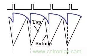 當(dāng)輸入電壓比輸出電壓高△V時,開關(guān)管D保持常開,開關(guān)管C保持常關(guān),開關(guān)管A和B工作于同步的Buck模式。其工作原理與一般的同步的Buck工作原理完全相同,控制的方法為谷點電流模式,如圖2所示,其中D為占空比。