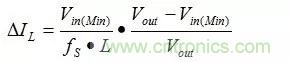 式中:△IL為電感電流的紋波,fs為開關(guān)頻率。