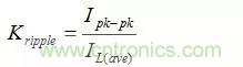 式中:Ipk-pk為電感電流的峰峰值,IL(ave)為電感電流的平均值。