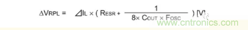 以下是表示輸出紋波電壓的公式。電容器的紋波電壓和ESR的紋波由于相位偏離,故無(wú)法進(jìn)行單純的加算,不過(guò)卻是紋波電壓的最差值概算常用的公式。