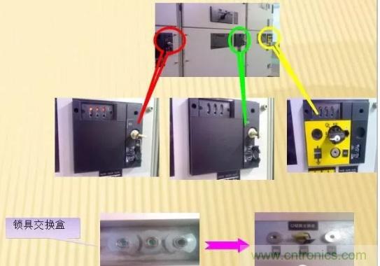 當(dāng)需要斷開出線柜時(shí),先將N電源柜、E電源柜停電,拔出KEY1、KEY2鑰匙,然后將鑰匙插入鎖具交換盒里,取出KEY3鑰匙插入出線柜聯(lián)鎖的鑰匙孔,方能操作出線柜。合出線柜的操作步驟則相反。