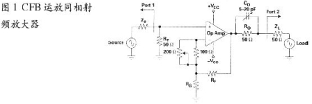當(dāng)然,射頻設(shè)計者還要了解CFB運放的一些特點:放大器用運放的內(nèi)部構(gòu)造有所不同,但構(gòu)成放大器的基本拓?fù)錄]有改變;CFB運放數(shù)據(jù)表推薦的反饋電阻RF值應(yīng)嚴(yán)格遵守,增益應(yīng)用RG來調(diào)整;反饋環(huán)中不能有電容存在。