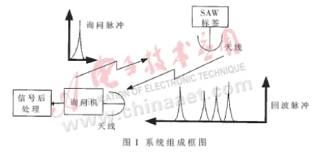 SAW傳感器構(gòu)成的車輛識別系統(tǒng)由一個裝載在高速運動車輛上的SAW傳感器標簽、一個帶主動式天線的詢問單元和一個信號后處理單元組成。如圖1所示。