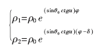 可以看出,ρ1和ρ2為螺旋臂上一點(diǎn)與原點(diǎn)(錐頂)的距離, ρ0為螺旋臂頂端端點(diǎn)與原點(diǎn)的距離。