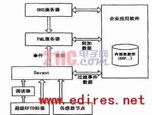 在圖3中,事件管理系統(tǒng)應(yīng)用在EdgeSavant(ES)上采集標(biāo)簽解讀事件,它與解讀器應(yīng)用程序通信,管理解讀器發(fā)送的事件流。EMS體系結(jié)構(gòu)中的“解讀適配器”和“解讀器接口”可看作一個(gè)通用的接口,對(duì)于EdgeSavant來(lái)講,由于解讀適配器直接或間接的與解讀器進(jìn)行通訊,并收集解讀器探測(cè)到的事件,然后將這些事件寫(xiě)入解讀器接口。對(duì)于InternalSavant來(lái)講,它是Edgesavants的父節(jié)點(diǎn)或上級(jí),IS從他的下屬EdgeSavant中采集EPC數(shù)據(jù),因此“解讀適配器”和“解讀器接口”可看作是通用的網(wǎng)絡(luò)數(shù)據(jù)訪問(wèn)接口。