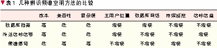 認知無線電(CR)概念由Joseph Mitola博士提出,其主導(dǎo)思想是實現(xiàn)伺機的動態(tài)頻譜接入,即非授權(quán)用戶(也稱次用戶或認知用戶)通過檢測,機會性地接入已分配給授權(quán)用戶(或主用戶) 但暫時很少使用甚至未被使用的空閑頻段,一旦主用戶重新接入該頻段,次用戶迅速騰出信道。這種技術(shù)需解決的首要問題就是如何快速準(zhǔn)確地獲取授權(quán)頻譜的使用情況,目前主要有3類解決方案:建立數(shù)據(jù)庫檔案、傳送信標(biāo)信號和頻譜感知。表1從多個方面對3種方案進行了比較,其中頻譜感知方案因具有建設(shè)成本低、與現(xiàn)有主系統(tǒng)的兼容性強等突出優(yōu)點,得到了大多數(shù)研究學(xué)者的認同;另外兩種由于受到政治、經(jīng)濟等因素的制約而很難實現(xiàn),對其研究相對較少。