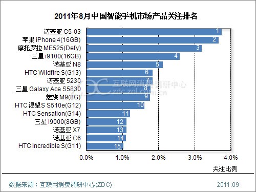 (圖)2011年8月中國智能手機市場產(chǎn)品關注排名