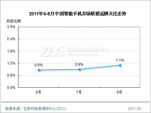 (圖)2011年6-8月中國智能手機市場聯(lián)想品牌關注走勢
