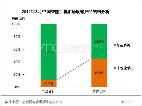 (圖)2011年8月中國智能手機市場聯(lián)想產(chǎn)品結構分析