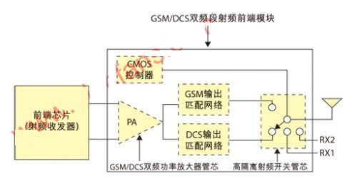 圖1 GSM/DCS雙頻段射頻前端模塊示意圖。
