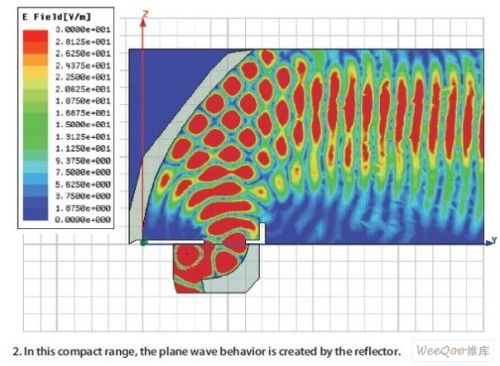 圖3:在緊縮測試場中由靜區(qū)上的反射面產生的平面波。