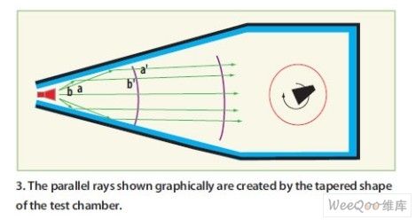 在錐形暗室中,源天線非常關鍵,特別是在較高頻率時(如2GHz以上),此時暗室行為對細小的變化更加敏感(圖4)。整個錐體的角度和處理也很重要。角度必須保持恒定,因為錐體部分角度的任何變化將引起照射誤差。因此測量時保持連續(xù)的角度是實現(xiàn)良好錐形性能的關鍵。