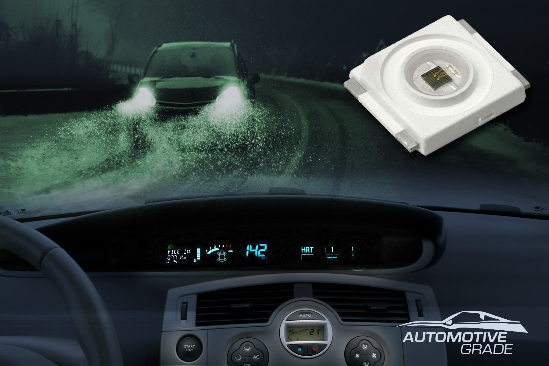 Vishay的SurfLight表面發(fā)射器技術(shù)使用一種獨特的硅片結(jié)構(gòu),在這個結(jié)構(gòu)中所有從半導體內(nèi)產(chǎn)生的光都從芯片的頂表面發(fā)射出來,從而使VSMY7850X01在1A電流下的發(fā)光強度高達170mW/sr,光功率高達520mW,正向壓降只有2V;SMY7852X01在250mA電流下的發(fā)光強度高達42mW/sr,光功率高達130mW,正向壓降只有1.8V。近日發(fā)布的兩款器件通過了AEC-Q101認證,半強角為±60°。