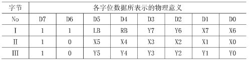 編碼的目的是將X和Y方向的位移改變量,連同鼠標按鍵的實時信息,按照標準的Microsoft鼠標協(xié)議要求的格式進行編碼,以便最后發(fā)送到主機的信息能夠被電腦正確識別,從而使電腦能正確處理發(fā)送給它的位移信號,來正確控制鼠標光標的移動等動作。表1表示的即是標準的鼠標協(xié)議規(guī)定的三字節(jié)數據包格式,第1個字節(jié)記錄的是左右按鍵的信息和鼠標X,Y位移的最高2個字位的數據,按鍵按下時,對應的位置1,否則,置0;第2和第3個字節(jié)分別記錄X和Y方向位移的低6位數據。位移值的范圍取-127~+127,再大的位移改變量會自動溢出。