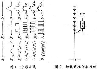 由于單純的RLC加載對(duì)小型化天線設(shè)計(jì)具有局限性。在保證一定效率的前提下,要進(jìn)一步減小單極子天線的尺寸,還需要做進(jìn)一步的研究。其中彎折線天線和分形天線是適應(yīng)設(shè)計(jì)發(fā)展的又一技術(shù)方法。如圖1所示。