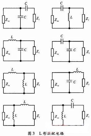 L形匹配電路:這類電路具有線路簡潔和成本較低的優(yōu)點,缺點是窄帶電路。由于要考慮匹配和功率的損耗,盡量使用電感和電容性的元件,因此共有8種基本的電路可供選擇。要設(shè)計合理的匹配電路就要選擇合適的電容電抗元件參數(shù),計算元件參數(shù)有兩類方法:通過阻抗直接計算和通過史密斯圓圖。前者的優(yōu)點是計算精確且適合計算機計算,后者是一種直觀有效的設(shè)計,可以充分合理地選擇最優(yōu)性能。現(xiàn)在可以通過使用計算機和功能強大的軟件直接設(shè)計。