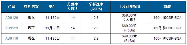 6、低功耗:1.1 W(2.8 GSPS);1.3 W(5.6 GSPS)
