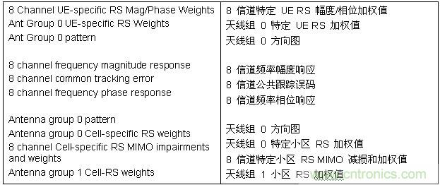 圖 9 中的表格顯示了對 8 個(gè)天線單元中的每 1 個(gè)進(jìn)行測量所得到的特定 UE RS 加權(quán)值。加權(quán)值可以同時(shí)從幅度和相位方面進(jìn)行測試,最多可細(xì)化到每個(gè)用戶發(fā)射相關(guān)的單個(gè)資源塊分配。測量應(yīng)用軟件還可提供每個(gè)空間多路復(fù)用層的單獨(dú)特定用戶 RS 加權(quán)值跡線。小區(qū) RS 映射提供了圖中的藍(lán)色曲線。