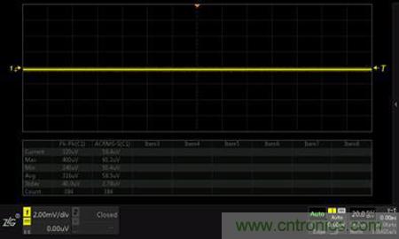 但是當(dāng)垂直檔位越大,量化噪聲逐漸占主導(dǎo)地位,而模擬前端噪聲雖然會隨著放大器的增益變化產(chǎn)生微小的改變,但是仍然在2mV以下。