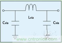 接地層確定后,將所有的信號(hào)地以最短的路徑連接到地層非常關(guān)鍵,通常用過孔將頂層的地線連接到地層,需要注意的是,過孔呈現(xiàn)為感性。圖3所示為過孔精確的電氣特性模型,其中Lvia為過孔電感,Cvia為過孔PCB焊盤的寄生電容。如果采用這里所討論的地線布局技術(shù),可以忽略寄生電容。一個(gè)1.6mm深、孔徑為0.2mm的過孔具有大約0.75nH的電感,在2.5GHz/5.0GHz WLAN波段的等效電抗大約為12Ω/24Ω。因此,一個(gè)接地過孔并不能夠?yàn)镽F信號(hào)提供真正的接地,對(duì)于高品質(zhì)的電路板設(shè)計(jì),應(yīng)該在RF電路部分提供盡可能多的接地過孔,特別是對(duì)于通用的IC封裝中的裸露接地焊盤。不良的接地還會(huì)在接收前端或功率放大器部分產(chǎn)生有害的輻射,降低增益和噪聲系數(shù)指標(biāo)。還需注意的是,接地焊盤的不良焊接會(huì)引發(fā)同樣的問題。除此之外,功率放大器的功耗也需要多個(gè)連接地層的過孔。