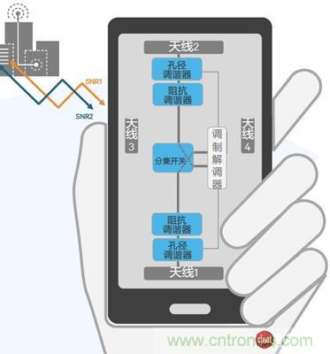 值得一提的是,高通的整合解決方案還支持載波聚合的TruSignal自適應天線調(diào)諧技術(shù)。TruSignal可被看作是三項技術(shù)的總稱:第一是主分集天線切換,它是用來解決手機“死亡之握”的問題——手機的主天線一般是在手機的下方,當人們用手握住它的時候,信號會掉得非???,當下方主天線被握死時,它可以將天線切換到上面的分集天線去;第二是天線調(diào)諧——天線調(diào)諧技術(shù)又包含兩類,一類叫孔徑調(diào)諧,一類叫阻抗調(diào)諧,通過調(diào)諧天線的匹配,可以解決天線和PA之間的適配問題;第三是高階分集接收——通過增加分集來提升接收性能,以及接收的下行速率。