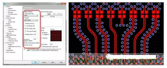 圖 5:利用支持射頻設(shè)計的PCB設(shè)計工具,您可以設(shè)定用于產(chǎn)生via模式的設(shè)計規(guī)則,并自動在您的設(shè)計中強制實施這些規(guī)則,從而節(jié)省您的時間和確保符合您的所有設(shè)計規(guī)則。