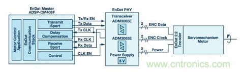 本文討論的EnDat接口是在ADI公司的ADSP-CM40x上實現(xiàn),后者是一款針對電機(jī)控制驅(qū)動器而開發(fā)的處理器。除了脈寬調(diào)制器(PWM)定時器、模數(shù)轉(zhuǎn)換器(ADC)和sinc濾波器等用于電機(jī)控制的外設(shè)以外,ADSP-CM40x還有高度靈活的串行端口(SPORT)。