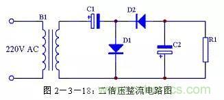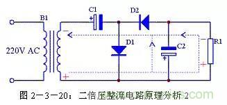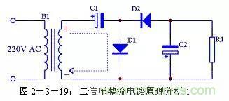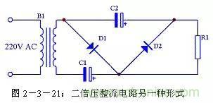 二倍壓整流電路還有另外一種形式的畫法,見圖2-3-21,其原理與圖2-3-18完全一致,只是表現(xiàn)形式不一樣。