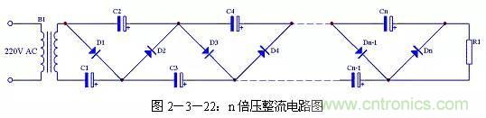 二倍壓電路還可以很容易的擴(kuò)展為n倍壓電路,具體電路見圖2-3-22。