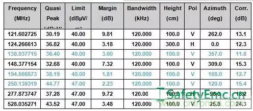 圖1:整機(jī)輻射發(fā)射測試數(shù)據(jù)