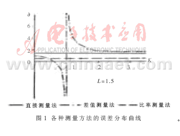 圖1表示取L=1.5時(shí)相對(duì)誤差隨元件值的分布情況??梢钥闯觯嚷蕼y(cè)量法在很寬的測(cè)量范圍內(nèi)均具有良好的抗干擾能力。當(dāng)存在多個(gè)影響因素或者在分析由上述方法組合成的測(cè)量裝置時(shí),可根據(jù)疊加原理按系統(tǒng)誤差的理論綜合評(píng)定其精度。