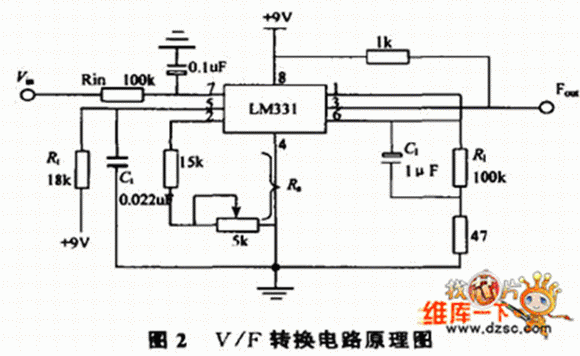 電壓/頻率轉換即V/F 轉換,是將一定的輸入電壓信號按線性的比例關系轉換成頻率信號,當輸入電壓變化時,輸出頻率也響應變化。針對煤礦的特殊要求,我們只分析如何將電壓轉換成200~1000Hz的頻率信號。