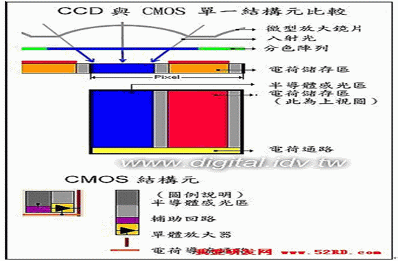 - 從CCD與CMOS的結構上分析兩者差異