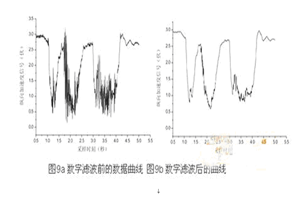 調(diào)整圖8中各個(gè)阻容元件的參數(shù),即可設(shè)置濾波截止頻率和延時(shí)大小。汽車運(yùn)行過程中,在較好路面上行駛時(shí),由于信號(hào)較好,延時(shí)盡量要小,而在顛簸路面上行駛,則希望濾波效果要好。但是由于硬件濾波的頻率特性一經(jīng)設(shè)計(jì)完畢,無法實(shí)時(shí)修改,故需要在軟件中設(shè)計(jì)數(shù)字濾波環(huán)節(jié)。數(shù)字濾波常用的有維納濾波器、卡爾曼濾波器、線性預(yù)測(cè)器、自適用濾波器等。在這里選用計(jì)算量小、實(shí)時(shí)性能好的一階低通濾波。