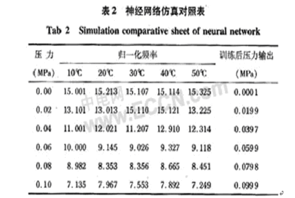 實(shí)際中,溫度變化對(duì)SAW壓力傳感器的性能影響非常明顯,通過(guò)神經(jīng)網(wǎng)絡(luò)的訓(xùn)練,訓(xùn)練的頻率和誤差在規(guī)定范圍內(nèi),其最大誤差僅為1%,BP算法的仿真結(jié)果和實(shí)際測(cè)量值吻合。