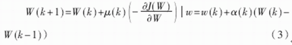 其中,μ(k)為學(xué)習(xí)率,α(k)為動(dòng)量因子,也稱為遺忘因子,又稱動(dòng)量項(xiàng)或阻尼項(xiàng)。將其稱為遺忘因子可從對(duì)于新舊信息的學(xué)習(xí)與遺忘的角度來(lái)理解;稱為動(dòng)量項(xiàng)或阻尼項(xiàng)是因?yàn)樵诰W(wǎng)絡(luò)的學(xué)習(xí)訓(xùn)練中,此項(xiàng)相當(dāng)于阻尼力,當(dāng)訓(xùn)練誤差迅速增大時(shí),它使網(wǎng)絡(luò)發(fā)散得越來(lái)越慢??傊咕W(wǎng)絡(luò)的變化趨于穩(wěn)定,有利于網(wǎng)絡(luò)的收斂。