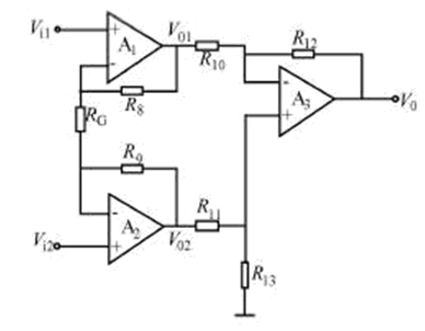 在許多檢測技術應用場合,傳感器輸出信號往往較弱,而且其中還包括工頻、靜電和電磁耦合等共模干擾,對這種信號的放大就需要放大電路具有很高的共模抑制能力以及高增益、低噪聲和高輸入阻抗,習慣上稱為移用放大器,如圖7所示。