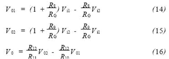 移用放大器從電路結構可知,這是一種同相并聯(lián)差動放大器,其對稱性結構使整個放大器具有很高的共模抑制能力,特別是適用于長距離測量。其數(shù)學模型為: